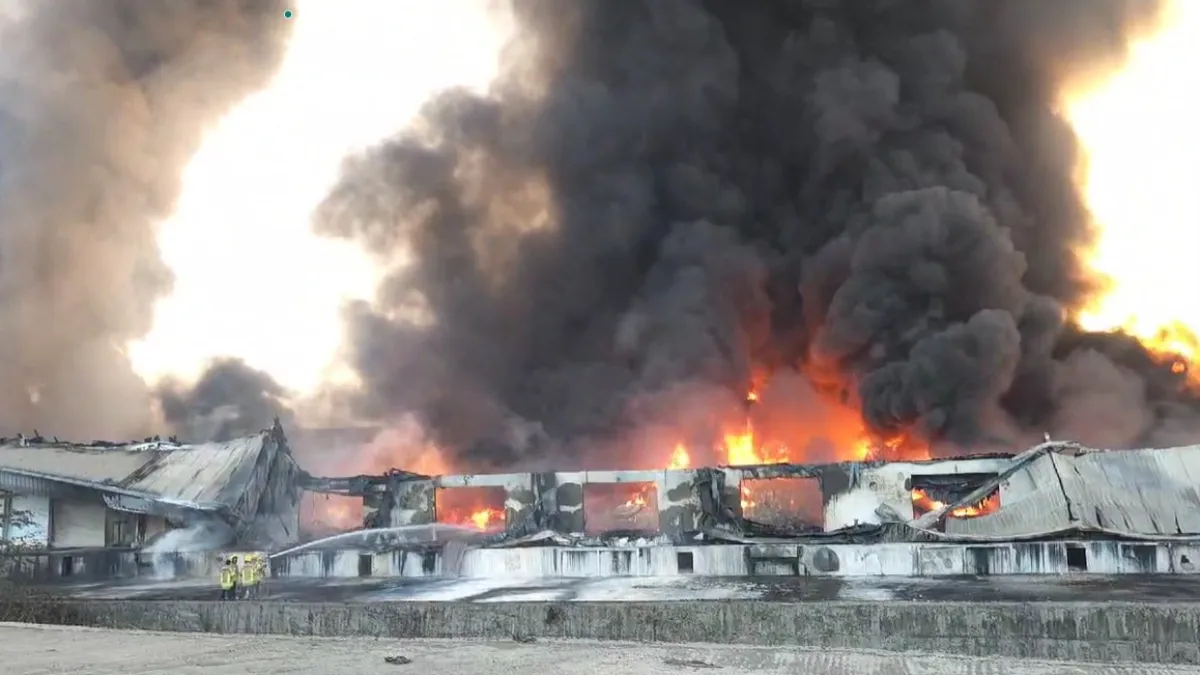 The facility housed a large quantity of hydraulic oil, textiles, plastic goods, and various chemicals, raising concerns about potential hazards associated with the fire. As of now, the cause of the fire remains unclear, and efforts to control the flames are ongoing.