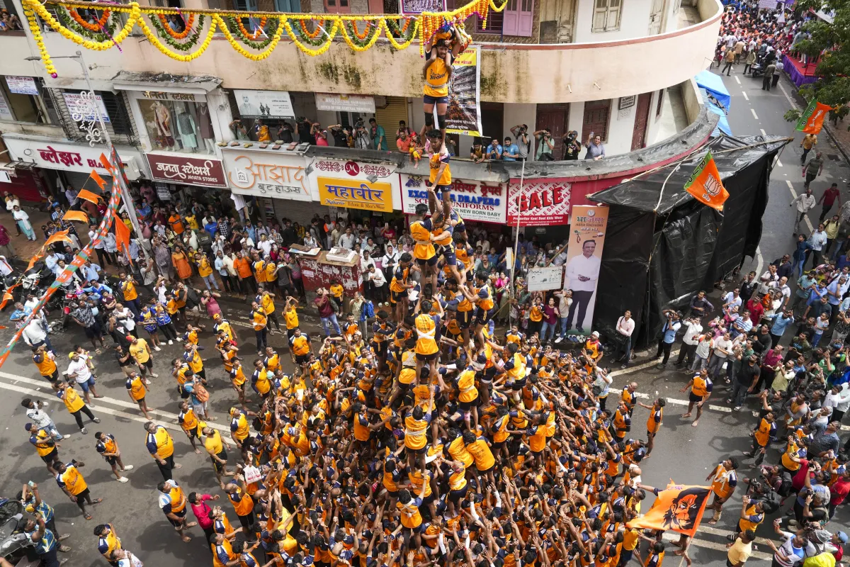 As part of the celebrations, Govindas form multi-tiered human pyramids to break Dahi Handis (clay pots filled with curd) suspended mid-air.