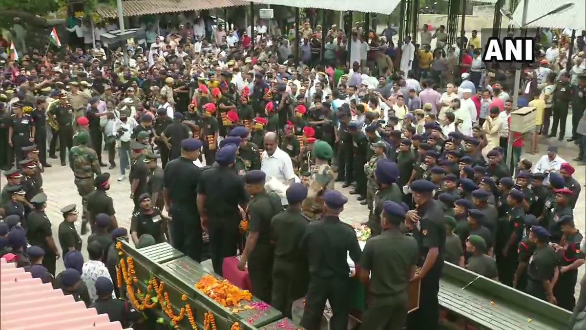 Thousands turned up to pay their last respects to Major Ketan Sharma, who was killed in an encounter with militants in Jammu and Kashmir's Anantnag, as his mortal remains were brought to his hometown Meerut in Uttar Pradesh on Tuesday.