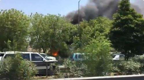 Image Source : TwitterA speeding car caught fire at sector 148 on Noida-Greater Noida Expressway, on Tuesday.