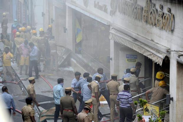 Over 150 fire service personnel are still battling to douse the fire that broke out at Chennai Silks showroom in Usman Road of T Nagar, the commercial hub of Chennai. The fire continues to engulf the multi-storied building of Chennai Silks, a saree and textile store, for the second consecutive day with thick dark smoke continuing to bellow out of the store.