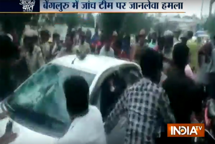 The team members were "heckled, chased, attacked and the windowpanes of police vehicles smashed" by the mob after it detected an illegal abattoir at Dodda Bettahalli, according to Kavitha Jain, a member of the NGO working for the protection of cows and its progenies.