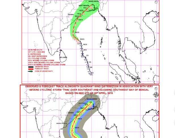 “Cyclonic storm Fani is very likely to intensify further into an extremely severe cyclonic storm during next 12 hours. It is very likely to move northwestwards till 01st May evening and thereafter recurve north-northeastwards and cross Odisha Coast between Gopalpur and Chandbali, to the south of Puri around 3rd May afternoon with maximum sustained wind of speed 175-185 kmph gusting to 205 kmph,” said IMD.