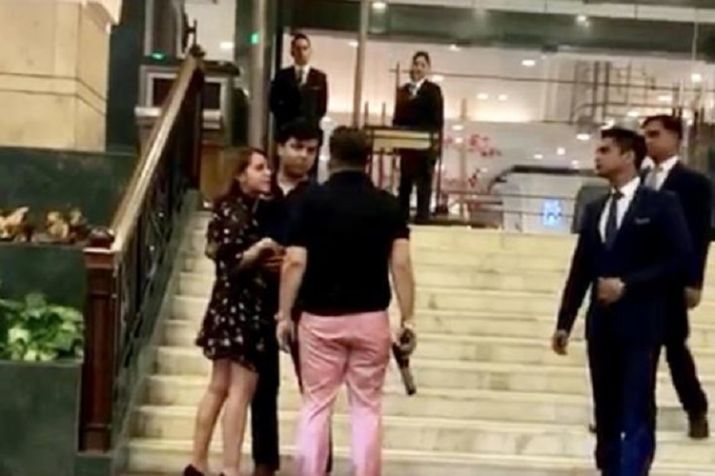 In the video, Ashish Pandey, whose brother Ritesh Pandey is an MLA in Uttar Pradesh, is purportedly seen brandishing a gun in the foyer of the hotel, a police officer said.
