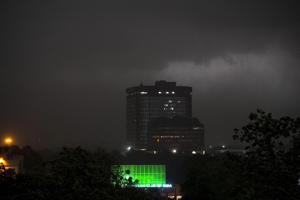 Dust storm, strong winds, and clouds turned the sky dark in Delhi on Saturday.