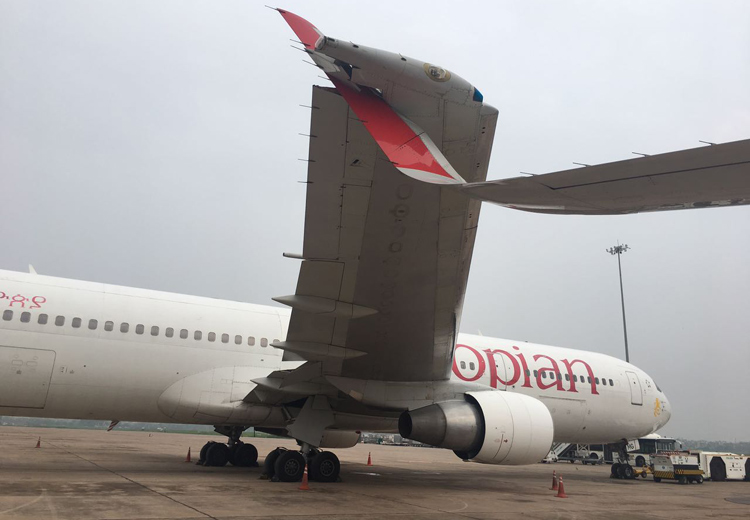 A plane belonging to the Ethiopian Airlines clipped wings with a parked Air India aircraft at the Indira Gandhi International airport here on Tuesday night. The incident took place when the Ethiopian Airlines was being pushed back for take-off and Air India's Airbus A320 was parked, PTI reported.