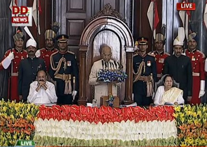 Vice President M Venkaiah Naidu, Prime Minister Narendra Modi, Lok Sabha Speaker Sumitra Mahajan, union ministers, BJP president Amit Shah, Congress President Rahul Gandhi, Sonia Gandhi were among others present in the Central Hall when Kovind delivered his first speech.