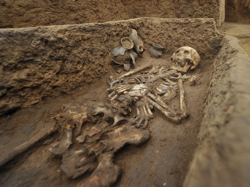 A huge quantity of human skeletal remains has been recovered from the railway junction here and one person arrested in this connection, police said