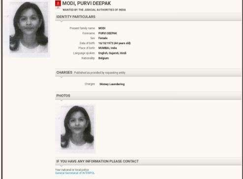 Interpol has issued a red corner notice (RCN) against Purvi Modi, the sister of Punjab National Bank (PNB) scam accused Nirav Modi, on Monday.