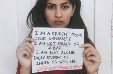 The campaign by 24-year-old Delhi University student Kaur titled "I am not afraid of ABVP" has gone viral and received massive support from students across various universities.