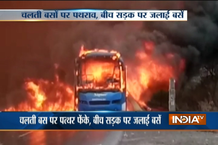 The protestors torched several buses and other vehicles on the Bhopal-Indore highway on Wednesday.