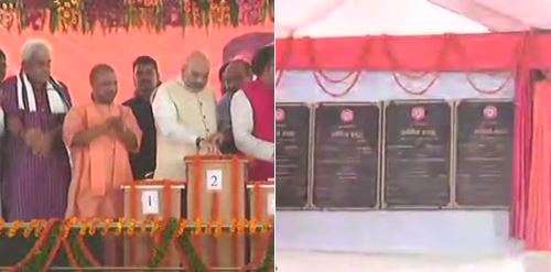 BJP president Amit Shah on Sunday inaugurated new Deen Dayal Upadhyaya railway station, which was earlier known as Mughalsarai. Union Minister Piyush Goyal and Uttar Pradesh Chief Minister Yogi Adityanath were also present.