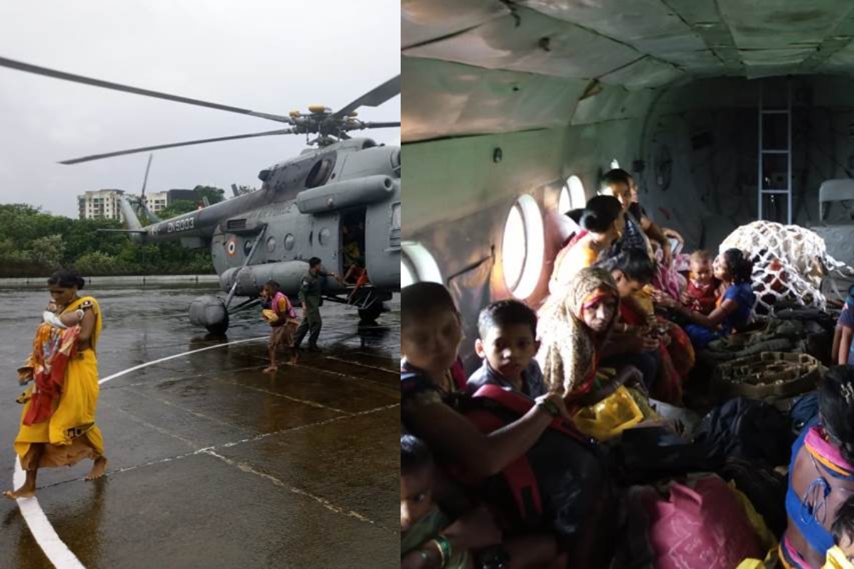 The Indian Air Force (IAF) on Sunday deployed helicopter in the rescue operation and airlifted around 58 stranded people, including 16 children from the Ju-Nandkhuri village near Khandvali in Thane district, on the request of CM Devendra Fadnavis of additional assistance from NDRF, Air Force.