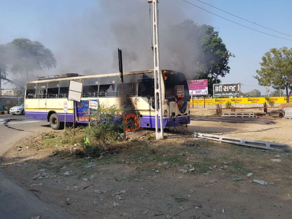 A protest was carried out by an outfit ‘Mahakal Sena’ in Banaskantha by setting vehicles and tyres on fire, triggering massive traffic jam on National Highway 27. Agitators in Gandhinagar also torched vehicles to register protest.