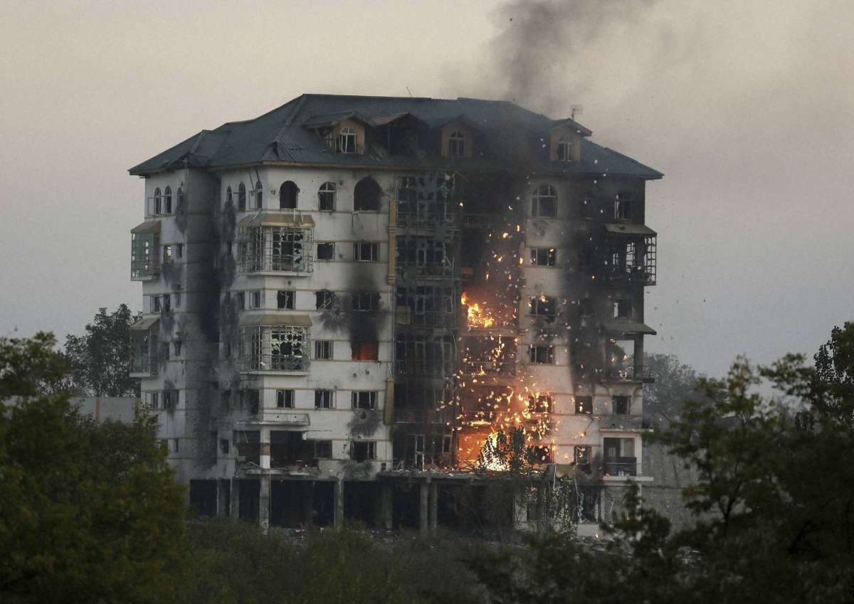 Security forces kept on pounding the building where the guerrillas armed with rockets, grenades and automatic gunfire have held the forces at bay.