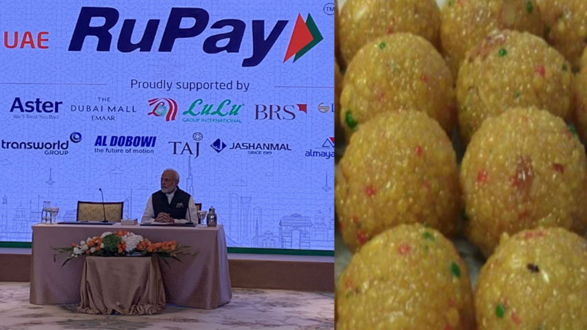 PM Narendra Modi made the first RuPay card payment in UAE by swiping it from a mock Chhappan Bhog Abu Dhabi outlet and purchased one-kilogram laddoo. The prime minister will offer it as a 'prasad' at Shreenathji Temple in Bahrain on Sunday.