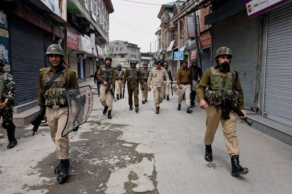 Police said militants lobbed a grenade at a security force party in old city's Nowhatta area at around 6.30 p.m. as they were withdrawing from the area after the day's deployment.