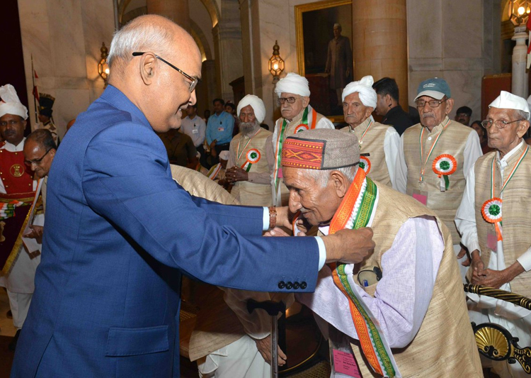 On the 75th anniversary of Quit India movement, President Ram Nath Kovind on Wednesday felicitated 93 freedom fighters from across the country. This was his first 'At Home' reception in which he presented each of them with a gift that carried a personalised message.