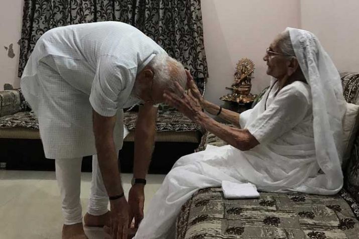 Even as scores of people waited to have a glimpse of him, the Prime Minister then reached Raisan near here to seek his mother Hiraba's blessings. The nonagenarian stays with Modi's younger brother in Raisan.
