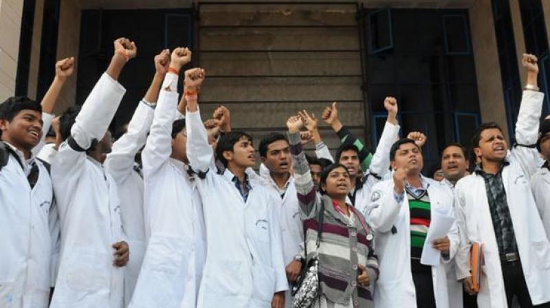 Resident doctors from Delhi-AIIMS, Safdarjung Hospital, PGI-Chandigarh and Aligarh Muslim University along with several other organisations today took out a protest march against the National Medical Commission Bill.