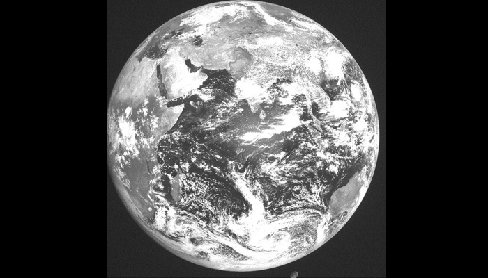 INSAT-3DR Imager captured the image of the Earth disk with the Moon in background.