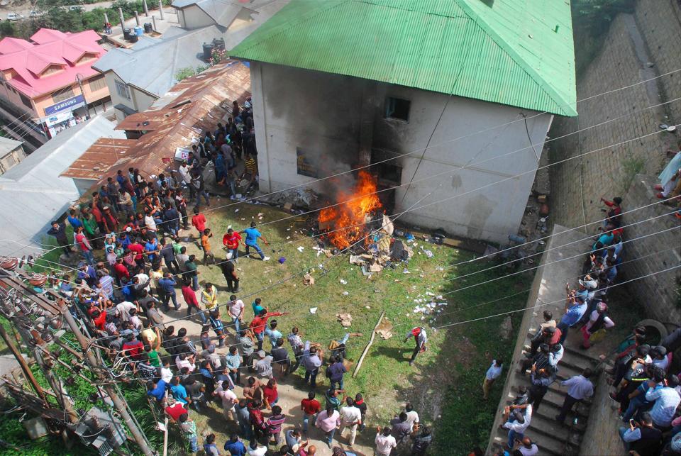 The mob ransacked the police station in Kotkhai, some 56 km from the state capital, and did not allow the critically injured policemen to be taken to hospital for treatment. It also burnt three police vehicles.