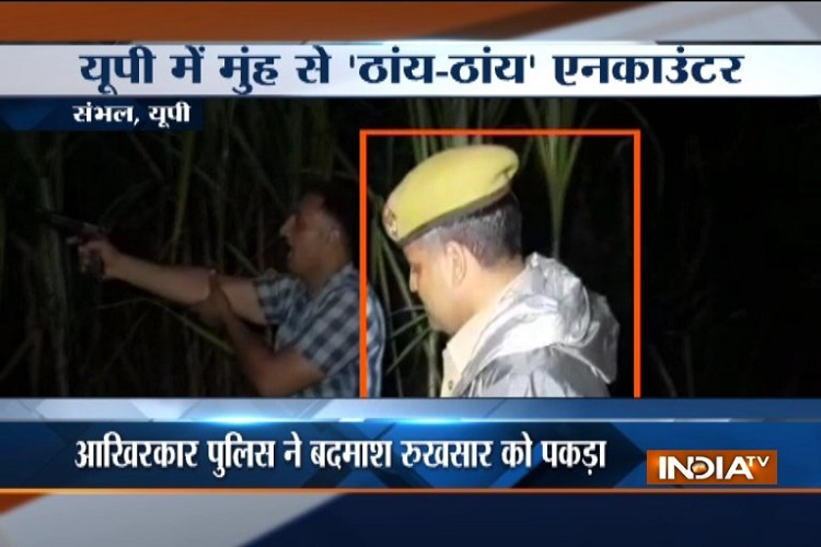 A video showing Uttar Pradesh policeman imitating the sound of gunshots has surfaced. During an encounter with criminals in Sambhal district of the state, the pistol of one of the police officers got jammed, following which he decided to scare the criminals by mimicking the sound of gunshots by shouting “thain thain”.