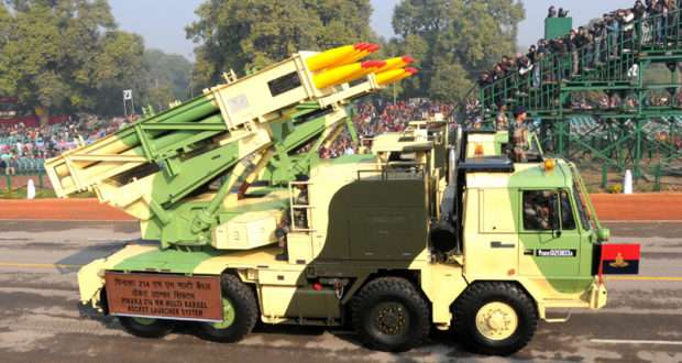 3. Pinaka is a 'MBRL artillery system' which places 12 HE rockets on top of a Tatra Truck. All the rockets can be fired simultaniously within 44 seconds or fired independently as per required by the army.