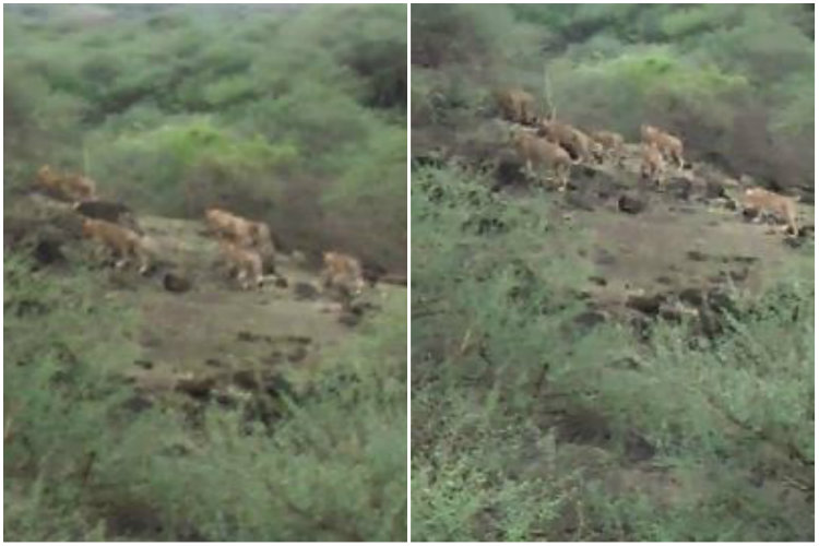 A video from Dhari tehsil of Amreli district has surfaced on the internet which shows pride of 20 Asiatic lions of Gir heading towards a hilltop to escape from the insects. It is often seen that lions go to the heights during the rainy season where they get more air and rid of mosquitoes.