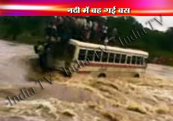 The driver lost control over the vehicle when water entered its silencer and was washed away near Phulkulsma, according to police most of the people inside the bus were rescued by the local people.