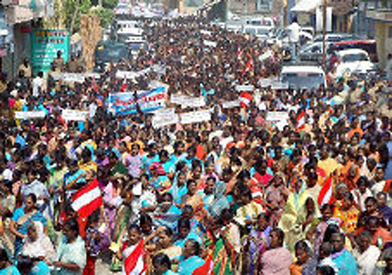 Nagapattinam (Tamil Nadu), Aug 10: An estimated 20,000 fishermen today staged a black flag demonstration in the sea onboard their boats protesting the recent arrests of 65 of their colleagues by the Sri Lankan Navy and demanding their immediate release.