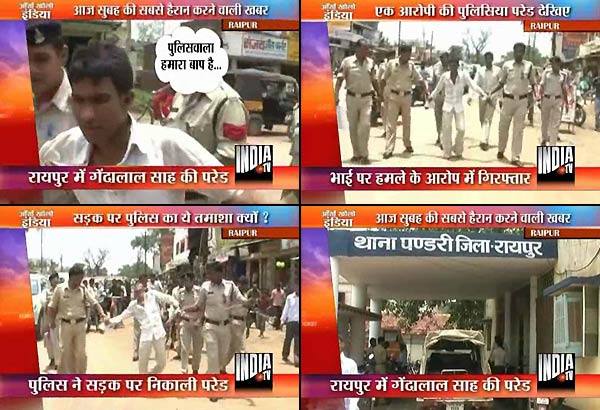 On orders from the seniormost official of a local police station, an attempt to murder accused Gendalal Sahoo was on Monday paraded on the streets of Raipur, with seven policemen forming a circle around him, and two policewomen at the back.