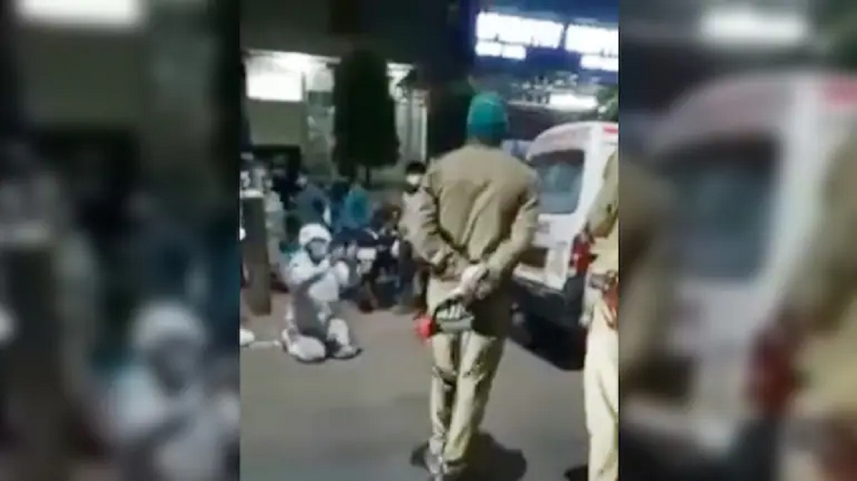 Videos of the youth in a PPE kit, down on his knees and crying as he pleads with the cops to give him back the cylinder or 'my mother will die' was shared on social media platforms, drawing widespread criticism.
