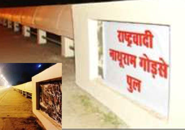The four lane flyover connecting Bhagat Singh circle to Agrasen Circle in Alwar and had name plaque of 750m saying `Rashtrawadi Nathuram Godse Pul' (Nationalist Nathuram Godse Bridge). The plague was removed after media started asking questions to the officials.