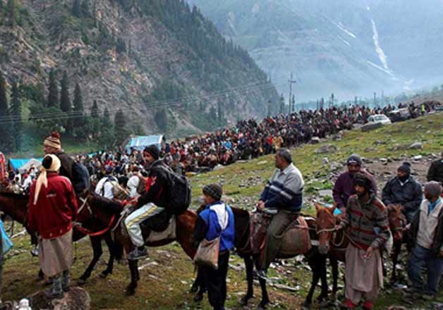 Srinagar: Amarnath yatra today resumed from the base camps after a day-long suspension due to inclement weather in South Kashmir Himalayas.