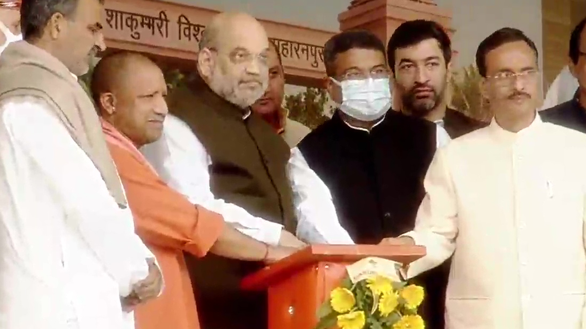 Union Home Minister Amit Shah on Thursday laid the foundation stone for Maa Shakumbhari Devi University in Saharanpur’s Behat Assembly constituency. Shah laid the foundation stone in the presence of Uttar Pradesh Chief Minister Yogi Adityanath, just months ahead of the state Assembly elections.