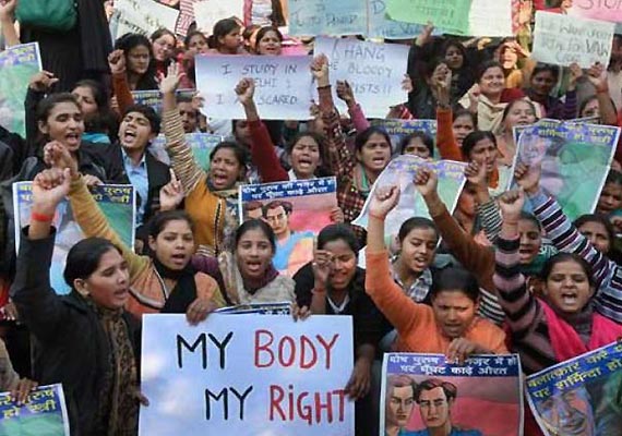 A group of young men shouted slogans "Phaansi Do", "We want justice" "Balaatkariyon Ko Phansi Do", as the weeping mother of Damini spoke to mediapersons.