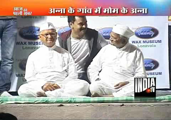 Ralegan Siddhi, Nov 20: Gandhian Anna Hazare on Saturday unveiled his own wax statue made by Sunil Kandalloor, India's first and only wax model sculptor from Celebrity Wax Museum.