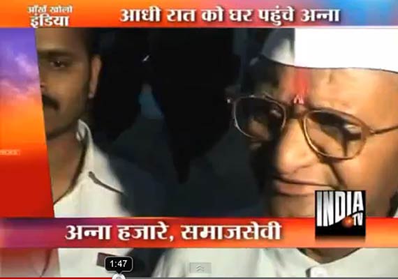 After being discharged from a Gurgaon hospital on Wednesday evening, where he was was recuperating for four days after his 288-hour long fast, Anna left straight for Delhi airport from where he took the flight to Pune, and from therere reached his village. India TV reporter Bhumika Sharma was on the same Kingfisher flight, and followed Hazare to his native village.