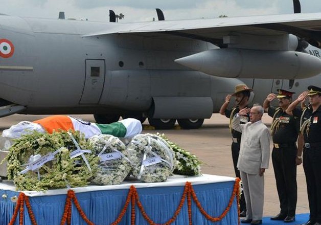 The mortal remains of Kalam were brought to Mandapam from Madurai in a helicopter after being flown there from Delhi in a special Indian Air Force (IAF) aircraft. Union Parliamentary Affairs Minister M Venkaiah Naidu and Defence Minister Manohar Parrikar accompanied the casket.