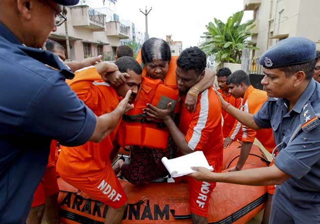 Chennai: Army and navy on Tuesday came to the rescue of hundreds of people severely hit by heavy rains in Chennai that have left several parts of the city submerged