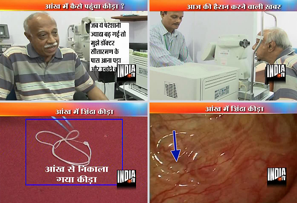Krishnamurthy's wife, Saraswati, who witnessed the surgery, said that the sight of live worm being pulled out from her husband's eye left her horrified. "It just kept moving and jumping; it was scary for a bit."