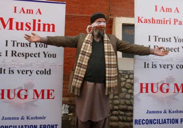 On Monday, Sandeep Mawa, a doctor by profession, accompanied by members from the Sikh and Muslim community, stood blindfolded at the Press Colony in Srinagar inviting people to hug him. In a unique message of tolerance through what they termed as the ‘Hug Campaign', the participants embraced people regardless of their religion in a bid to send a message of tolerance.