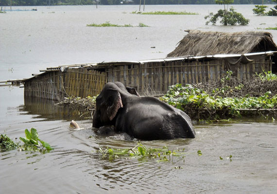 During the floods, the animals, particularly one-horned rhinos, stray outside the park. The rhinos and other animals normally go towards the Karbi Anglong Hills looking for higher grounds.