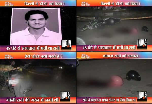24-year-old Sunny, a mobile repair shop owner in Daryaganj was returning home on his bike when he saw Head Constable Ajay Tomar shooting an old businessman Amarjit Singh Chaddha and fleeing. A policeman stopped Sunny's motorbike and gave chase. Tomar shot at Sunny and the bullet was lodged in his neck.