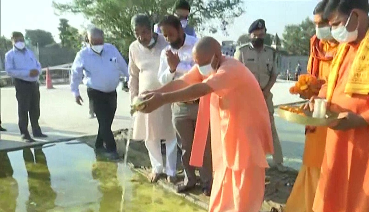 Uttar Pradesh Chief Minister Yogi Adityanath on Sunday performed 'Jal Abhishek' with Kabul river water sent by an Afghanistan girl to Prime Minister Narendra Modi at Shree Ram Janmabhoomi in Ayodhya.
