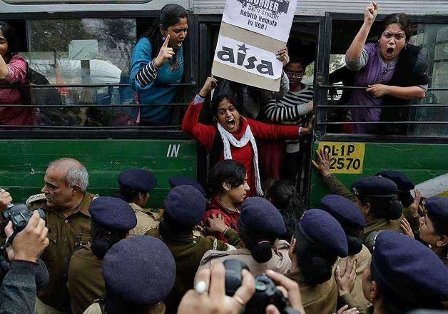 The student protesters were holding a demonstration outside the RSS office at Jhandewalan in central Delhi demanding justice for Vemula, the Hyderabad university research scholar whose suicide last month triggered nationwide outrage.
