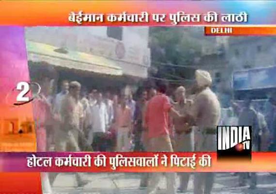 The policemen promptly caught hold of the hotel employee and began thrashing him. India TV telecast the incident in its Tuesday morning bulletin.