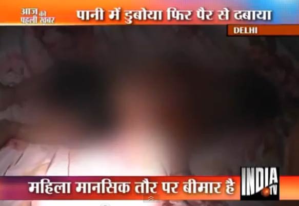 The woman, yet to be identified, was seen by neighbours from the balconies, tying a thread over the infant and drowning it in the water tank. After the infant almost died, the women took out the body and stamped it with her foot.