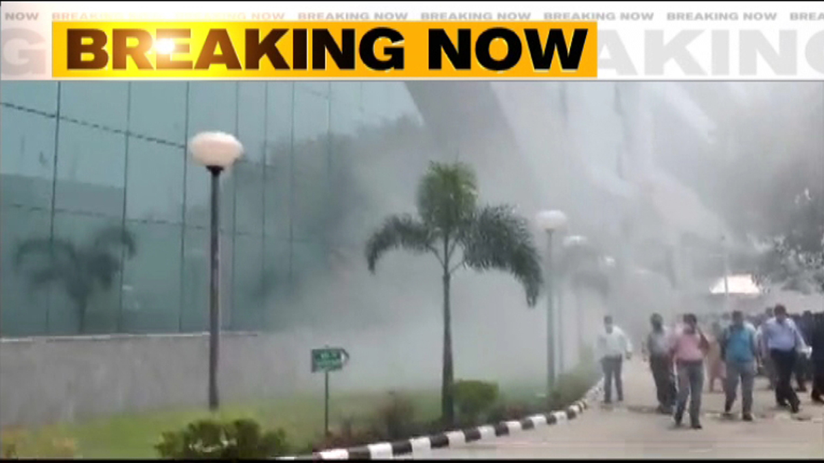 Officials rushed outside of the office soon after they saw smoke emanating from the site.